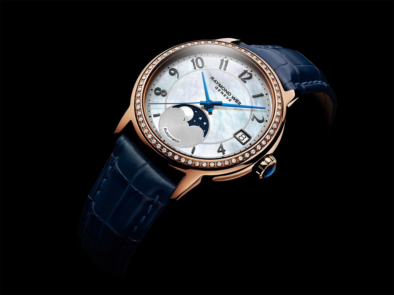 Коллекция Maestro от RAYMOND WEIL, впервые представленная в 2010 году, воспевает виртуозность швейцарского часового мастерства и благородство классической музыки. Эти механические часы с автоподзаводом, изготовленные с соблюдением швейцарских часовых традиций, оснащены индикатором фаз Луны в положении «на 6 часов» и 38-часовым запасом хода.