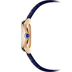 Благодаря сверкающему ореолу из 62 бриллиантов в корпусе диаметром 34 мм из нержавеющей стали с PVD-покрытием из розового золота на Maestro Ladies невозможно не обратить внимание. На белом перламутровом циферблате изящно расположились арабские цифры и небольшое окошко даты в положении «на 3 часа», а контрастные синие стрелки подчеркивают элегантность исполнения этой модели.