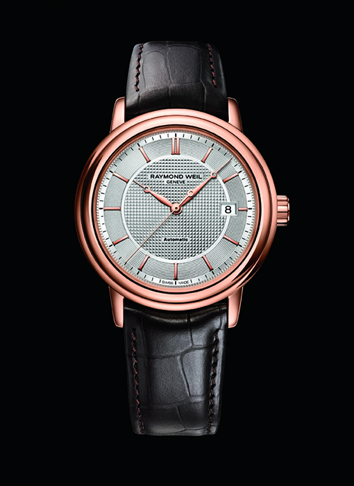 Maestro всецело демонстрирует абсолютную привязанность компании «Raymond Weil» к своим традициям, корням и музыке, которая является постоянным источником творческого вдохновения. Отчётливый классический дизайн и утончённый стиль моделей коллекции «Maestro» пользуются огромным успехом с момента создания коллекции, они нашли отклик в сердцах подлинных ценителей мастерства в часовом искусстве. В 2013 году коллекция «Maestro» пополнилась очередной новинкой – «Maestro Trois Aiguilles Or Rose», которая, как свидетельствует её название, впитала в себя свет лучей заходящего Солнца.