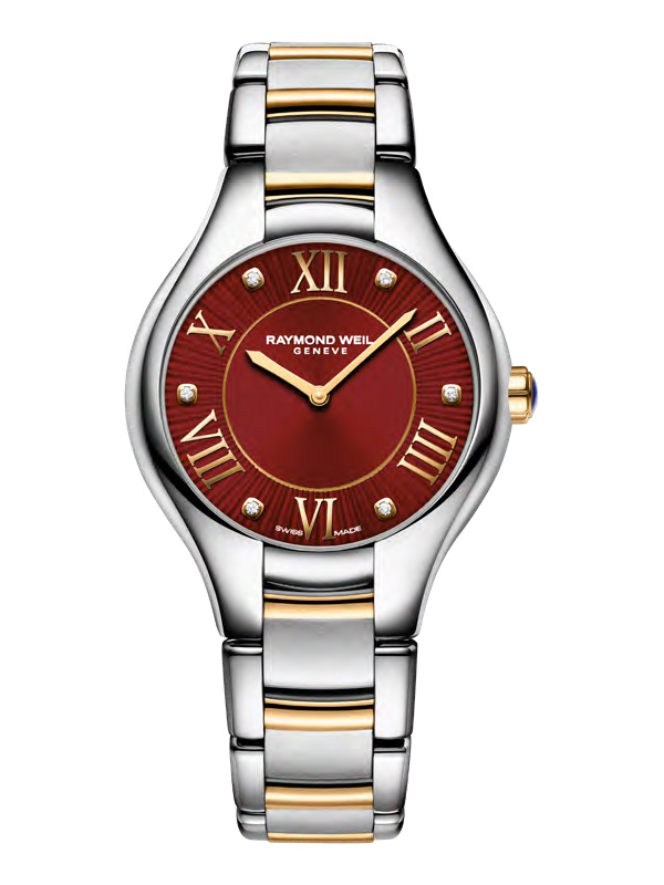 Кроме того, впервые в коллекции RAYMOND WEIL предлагается роскошный красный циферблат, дополненный золотыми акцентами как на циферблате, так и на браслете. В новых моделях также представлены два уникальных варианта бриллиантовых акцентов: полный круг из 50 бриллиантов, обрамляющий циферблат, и два сверкающих каскада из 18 бриллиантов, расположенных асимметрично вокруг циферблата. Оба варианта доступны с перламутровыми циферблатами.