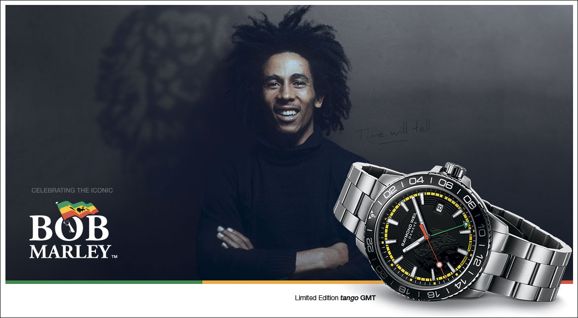 Компания RAYMOND WEIL при участии House of Marley разработала и выпустила ограниченной серией новую эффектную модель Tango GMT Bob Marley в честь этой культовой фигуры, которая оставила заметный след в мировой музыке и культуре.