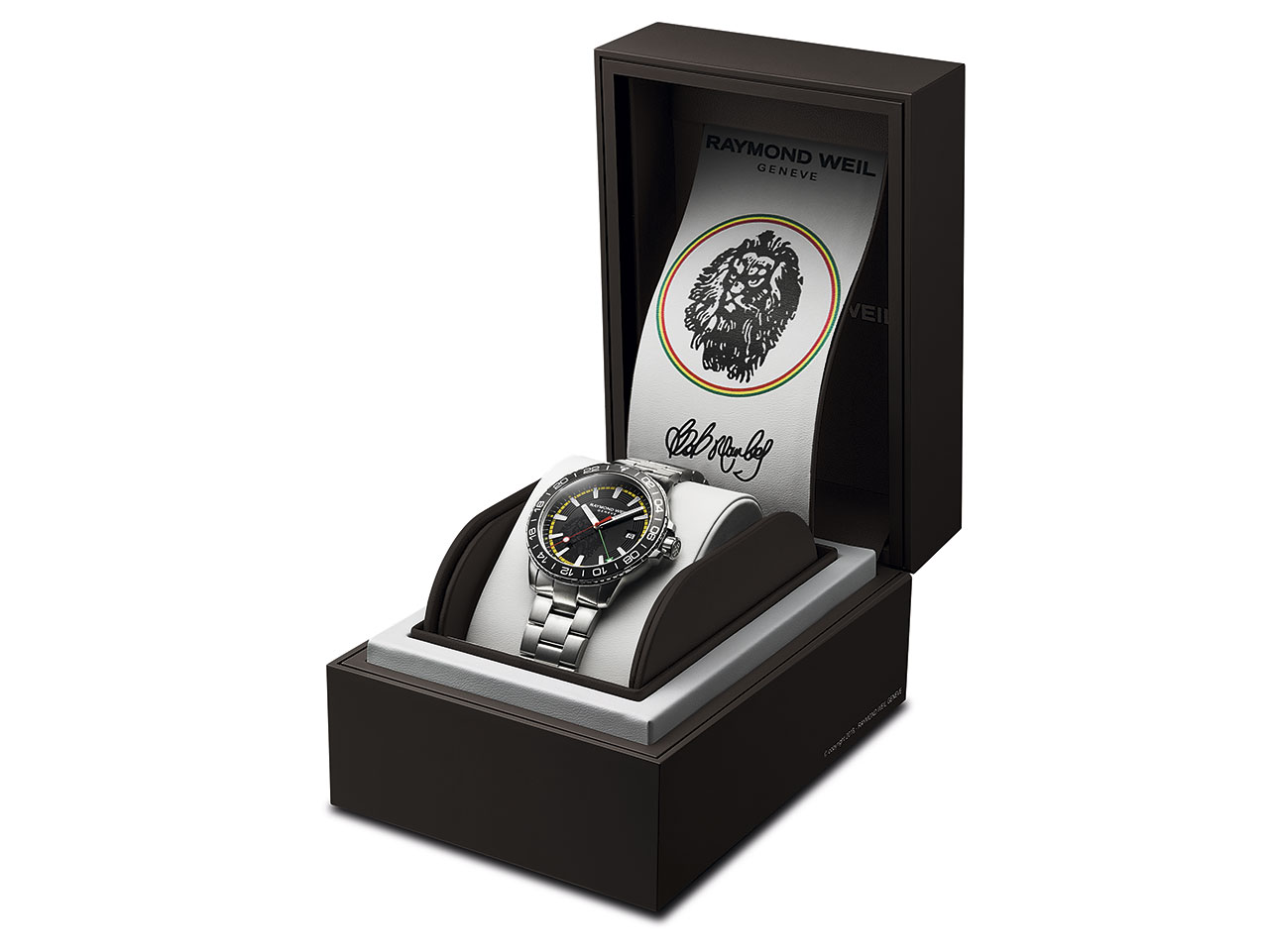 Помимо эффектного внешнего облика модель Tango GMT Bob Marley обладает прочностью, характерной для основной коллекции RAYMOND WEIL Tango, и водонепроницаемостью до 300 метров. Часы с браслетом из нержавеющей стали, которые снабжены застежкой с системой двойной блокировки, станут обязательным аксессуаром любого поклонника Марли.