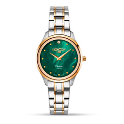 С 7 вариантами дизайна, Venus Diamond предлагает богатый выбор: элегантные часы из нержавеющей стали с белым или коричневым перламутром, выразительные модели с желтым золотым или розовым золотым покрытием и циферблатами зеленого или синего цветов. Корпус из нержавеющей стали диаметром 30 мм., швейцарский кварцевый механизм Ronda 762-A2, водонепроницаемость до 5 АТМ. Благодаря элегантному и стильному виду, Venus Diamond является потрясающим аксессуаром под любой образ своего владельца.