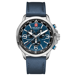 4. Swiss Military Hanowa Arrow Chrono 06-4224.04.003: серебристый корпус, синий циферблат, ремешок синего цвета.