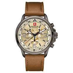 3. Swiss Military Hanowa Arrow Chrono 06-4224.30.002: корпус с ионным напылением цвета оружейной стали, светло-коричневый циферблат и светло-коричневый ремешок.