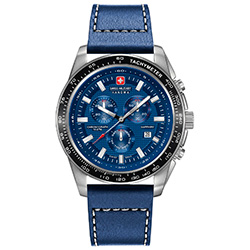 | 8. Swiss Military Hanowa Crusader Chrono 6-5225.04.003: корпус из нержавеющей стали 316L, серебристый безель с тахиметрической шкалой, синий циферблат с часовыми индексами серого цвета, браслет из нержавеющей стали. | |