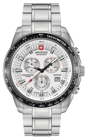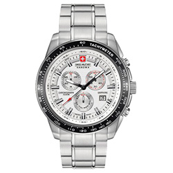 | 5. Swiss Military Hanowa Crusader Chrono 6-5225.04.001: корпус из нержавеющей стали 316L, безель с ионным покрытием чёрного цвета и тахиметрической шкалой, белый циферблат с часовыми индексами стального цвета, браслет из нержавеющей стали. | |