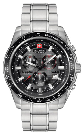 | 9. Swiss Military Hanowa Crusader Chrono 6-5225.04.007: корпус из нержавеющей стали 316L, безель с ионным покрытием чёрного цвета и тахиметрической шкалой, чёрно-серый циферблат с часовыми индексами серого цвета, браслет из нержавеющей стали. |