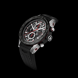 Новый хронограф «TAG Heuer Carrera - Calibre Heuer 01» комплектуется стильным перфорированным каучуковым ремешком чёрного цвета, снабжённым раскладывающейся застежкой и кнопками, обеспечивающими безопасное ношение часов.