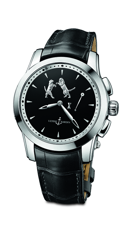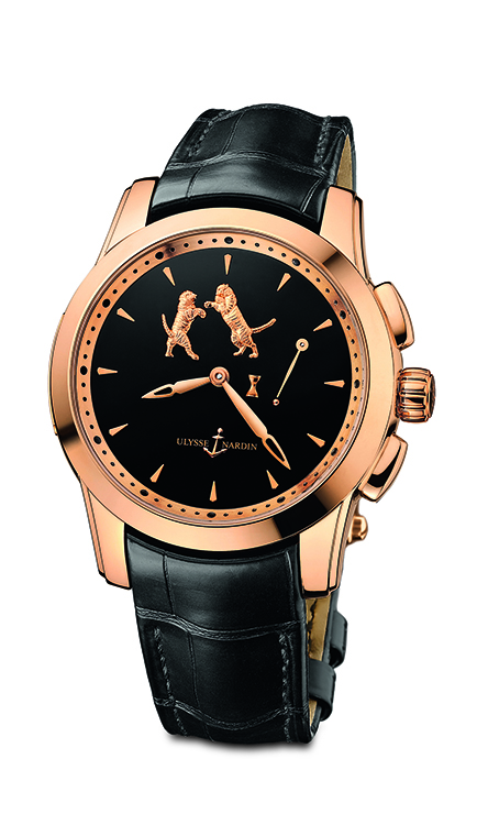 Знатокам и почитателям часового искусства Ulysse Nardin уже доводилось быть свидетелями миниатюрного циркового представления, рыцарского турнира, сафари и даже красочного венецианского карнавала. И вот теперь появились новые часы с репетиром, на циферблате которых главными героями великолепного действа являются ревущие и встающие на задние лапы тигры.